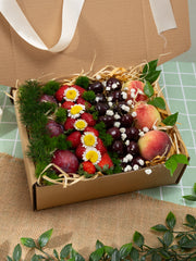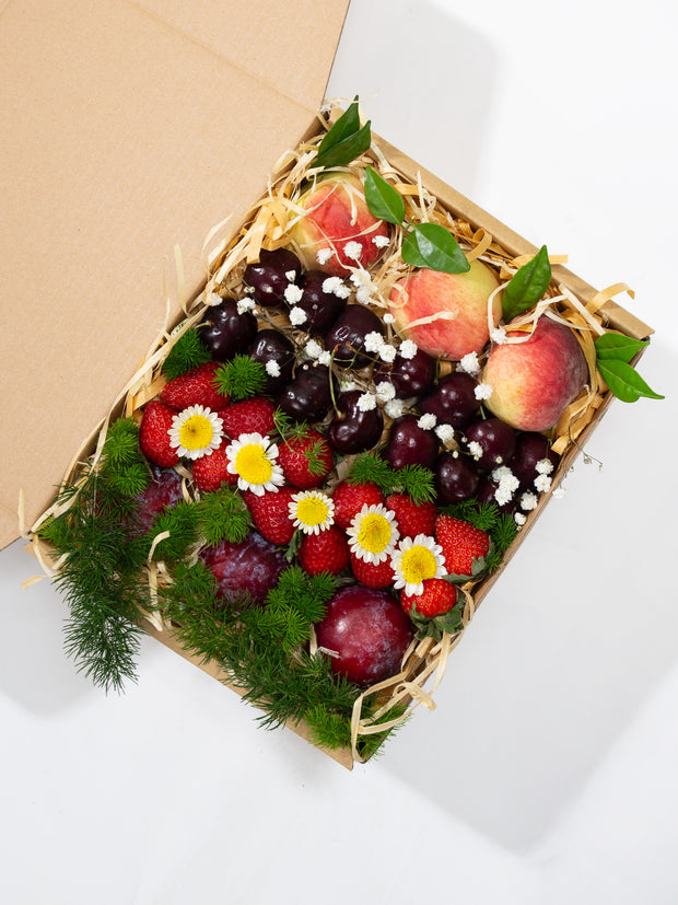Send your well wishes with our fruit box. This item consists of plum/apricot, strawberry, cherry and peach