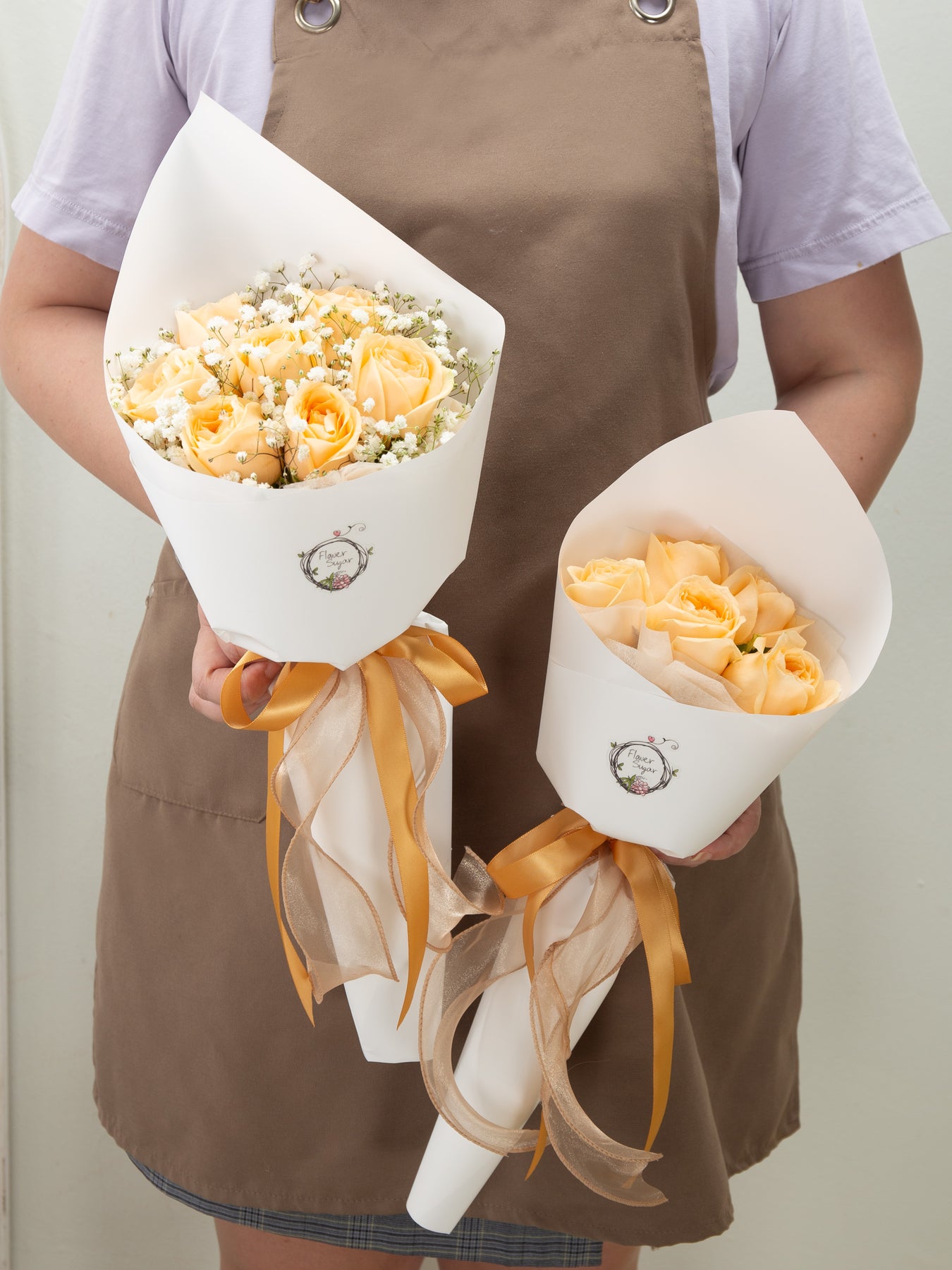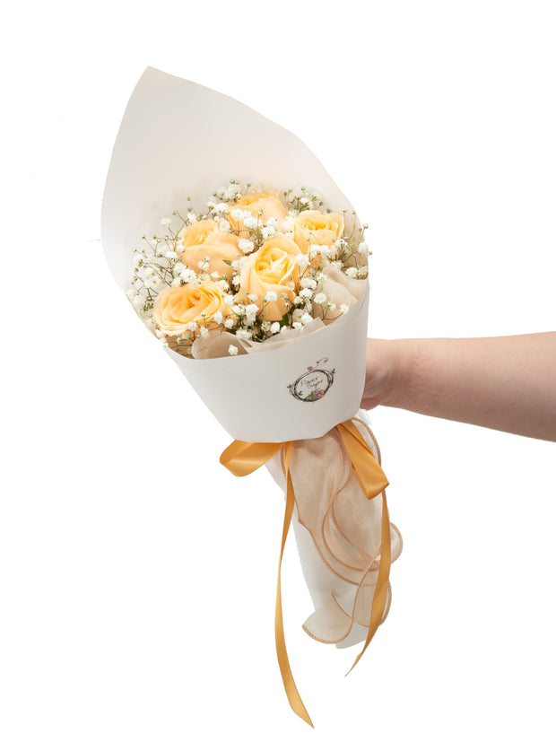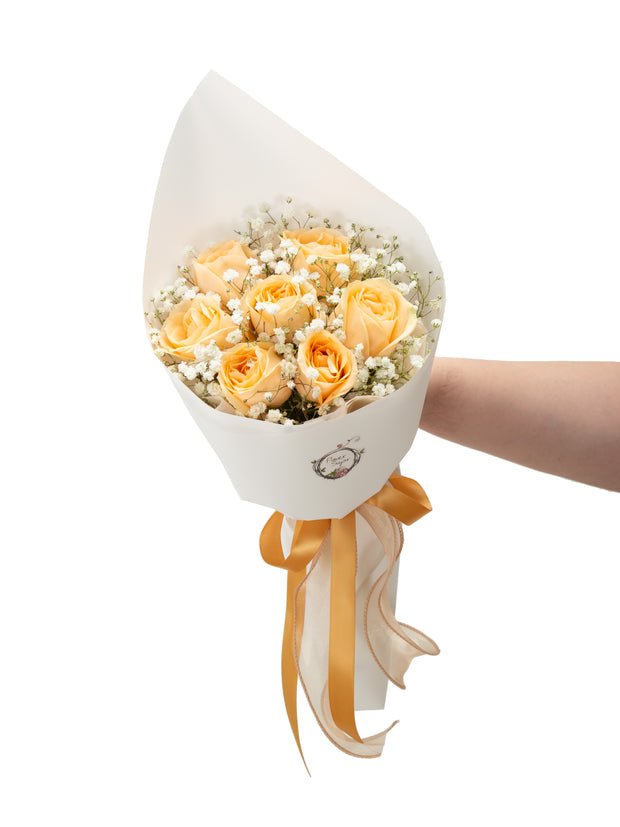 Delicate peach roses arranged in timeless simplicity — perfect for expressing admiration, gratitude, or love. Available in 5, 7, or 12 stalks, each bouquet can be styled with or without dainty sprigs of baby’s breath to suit your preference.